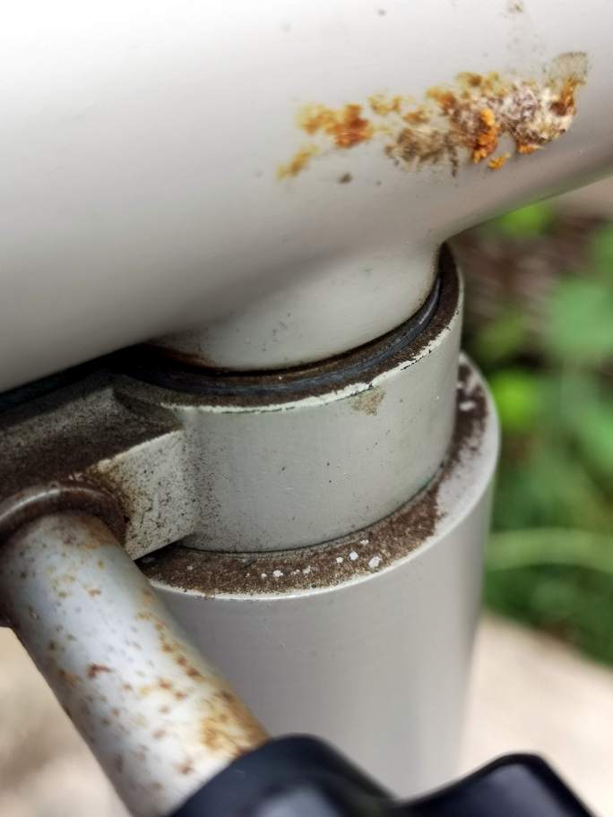 Hier sieht man (folgend) einige Beispiele, in welchem Zustand der TAL war. Nungut, also: ein Job. Dazu taugte dann ein wettermäß eh nicht so toller Freitag-Nachmittag sehr gut. Einige Stunden geputzt, Siff entfernen etcetc. machte aus dem kleinen Schmuddelgerät wieder ein recht ansehnliches Teleskop. Beim Auseinanderbauen fiel gleich diese herrlich solide Bauweise aus: das Tubusrohr aus massivem 2-3mm starkem Alu (nix zusammengefalzt); die Spiegelfassung solides Metall.