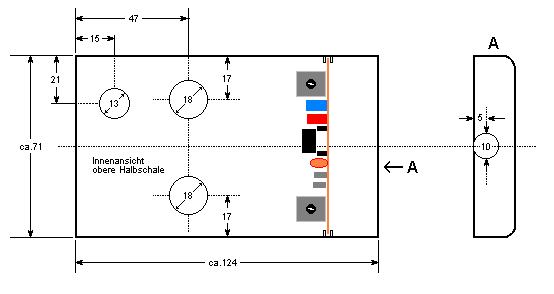 Nachdem die obere Schale der Handsteuerbox mit den Bohrungen versehen