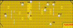 Zuerst wird die Platine abgeschnitten. 10 Lochstreifen mit einer Länge von 25 Rastern werden benötigt. Die Platine ist so zu schneiden wie abgebildet, bzw. wie mit den schwarzen Strichen markiert ist. Die Platine wir nicht geschraubt, sonder in die Führungslaschen der Handbox gesteckt. Etwas Sorgfalt und Überprüfung an der Box erspart hier Ärger. Vorraussetzung ist natürlich, daß das Gehäuse von Reichelt verwendet wird, das ich in der Materialliste angebe. Wer noch ein anderes Gehäuse rumliegen hat, und dieses unbedingt verwenden will muß selbst die Masse und Befestigung, aber auch die Anordnung der anderen Einbauteile klären. Auf die Bearbeitung der Platine will ich hier nicht nochmal eingehen. Es gilt im Prinzip das Gleiche wie beim EZB1. Als Vorlage für die Bearbeitung der Lötseite dient Bild 2. Als Besonderheit sei hier noch erwähnt, das die Platine an einer Ecke einen Ausschnitt bekommt. Hier wird im eingebauten Zustand die Verkabelung durchgeführt.