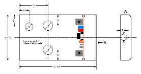 Die Ausschnitte für den Schalter 3 und die Gerätesteckdose werden am besten nach den Maßen auf Bild 8 vorgenommen. Für den Schalter S3 wird ein 12mm Loch gebort. Für die Steckdose werden zwei 3 - 4mm große Löcher (je nach Schraube) zur Befestigung gebohrt und ein Ausschnitt für den Anschlussteil. Für diesen Ausschnitt habe ich ringsherum mit einem 3mm Bohrer einen Öffnung ausgebohrt, dann alles mit einer kleinen Feile geglättet. Da es sich um ein Alu-Gehäuse handelt, lässt sich es sich sehr einfach bearbeiten. Zweimal bin ich aber mit der Feile abgerutsch, wie die Spuren auf dem Gehäuse zeigen ;-)