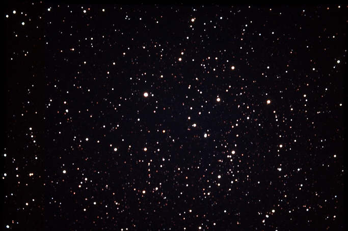 Allerdings ist diese Aufnahme trotzdem interessant. Ich habe das TAL2M gar nicht eingescheinert, nur einfach an der Montageplatte der Montierung nach dem Polarstern ausgerichtet, fertig. Dann 45 Minuten auf Kodak Elite Chrome 200 belichtet. Hin und wieder musst ich auch ein kleines bisschen an der DA-Achse korrigieren. Als Okular verwendete ich das 15mm Kellner mit dem Orginal TAL-Fadenkreuz. Als Leitstern peilte ich Vul 14 etwas nördlich von M27 an. damit das Fadenkreuz sichtbar wurde, habe ich den Stern einfach etwas defokusiert. Die Russentonne war umgebaut zur 100mm/f7 Optik, die Korrekturlinsen habe ich entfernt.