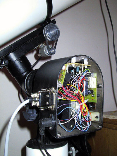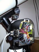 Mittlerweile geht's im Motorgehäuse etwas eng zu, aber immerhin hat TAL daran gedacht, daß Bastler etwas an Platz brauchen. Die drei Platinen sind für TFK, EZB1 und EZB3, den Deklinationsmotor sieht man auch im Hintergrund.