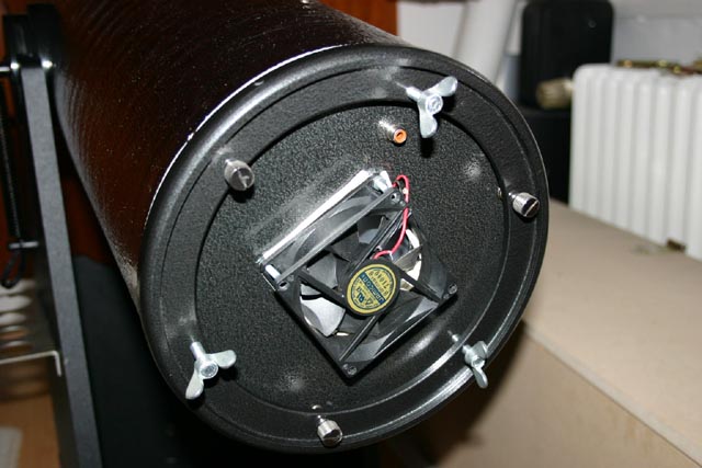 ![]() Ganz wichtig .. die "Zwangsbelüftung" des Hauptspiegels ... untzer Zuhilfenahme eines üblichen 12-V- Computerlüfters ... ![]() ![]() ![]() ![]() ![]() So .. und nun wieder den ganzen Salat zusammenbauen ... den gereingten Spiegl in die HS-Fassung und dann ... los gehts mit dem Zusammenbau ...Das mittlere Bild hier zeigt den "Greifknauf", denn ich Mr. Rotten noch spendiert habe ... Geht doch nichts über einen gut sortierten Baumarkt in der Nähe ... ![]() ![]() ![]() ![]() ![]() Sieht doch nun ganz anders aus .. der Kollege. Tja, beim Testen ist mir dann gleich mal der Computerlüfter abgeraucht ... Künstlerpech. Aber, wird schon. Nun noch justieren und testen ... ja, das Wetter ... *humpf* ... Tubus ist jetzt erstmal fertig, waren ca. 6 Std netto Arbeit, sechs nette Stunden für meine Nachbarin, die heute abend sicher den Kanal von "Rammstein" gestrichen voll hat (äääähem ...) Nun wartet noch die äusserst scheussliche grob laufende und viel zu schwere Rockerbox auf Dr. Pimp. Kommt! So, das is´ ja was ... da erfindet der Newtonnutzer Hannes gleich mal was Neues: Das Doppel"dobs-en" ... Habe ich doch vorne unter dem OAZ diesen "Greifknauf" angebracht. Ja, das ist ja schon alt, klar. Aber, bei unserer ersten SAZ fiel mir dann gleich auf: "Mensch, man kann ja auch hinten zwischen den Höhenrädern und der Spigelfassung noch so einen Knauf anbringen. Denn - meine Meinung - mit zwei Händen kann man so einen Dobson besser steuern. Das nenne ich jetzt mal ganz großschnäuzig das "Hase-Berg´sen" also, das einen Dobson mit beiden Händen steuern. ![]() ... an Mr. Rotten ... ![]() Und ... ist tatsächlich eine Erleichterung beim Steuern des Gerätes. ![]() Dann bekomme ich recht justagefauler Zeitgenosse meinen Mr. Rotten ohne jede Hilfe in 5 Minuten doch ziemlich genau justiert. Dies habe ich auch schon auf unserer ersten SAZ am 25.03. merken können: Mr. Rotten liess problemlos Vergrößerungen bis zunächst mal 172fach zu und brachte scharfe Bilder. Alles darüber ... war es Fehljustage oder das Seeing? Und dann den Lüfter heile gemacht. Der läuft ja sogar mit 9 V; es reicht also ne einfach 9-V-Blockbatterie ... Auf jeden Fall macht das Pimpen so langsam richtig Spass und dabei kommen einem einfache wie gute Ideen, die ich (siehe die Doppel-Greifknauf-Sache) so noch an keinem anderen Dobs gefunden habe. Na, wenn so ein als Linsenheini wie ich Verschrieener dann der Spiegelszene noch was mitgeben kann .. immer gerne ! *grins*